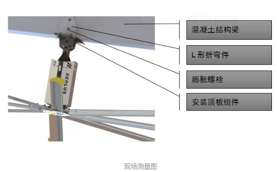 這種結構安裝時要求梁寬在300mm至600mm之間,如果梁的寬(厚)度大于600mm則需要特別訂制安裝部件。